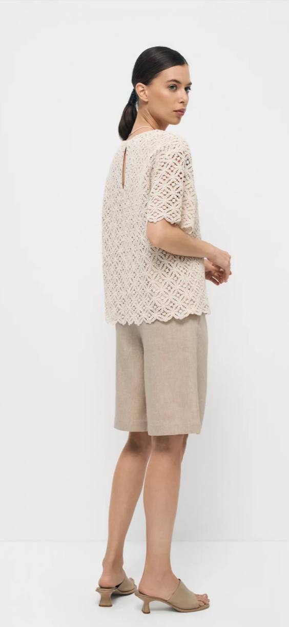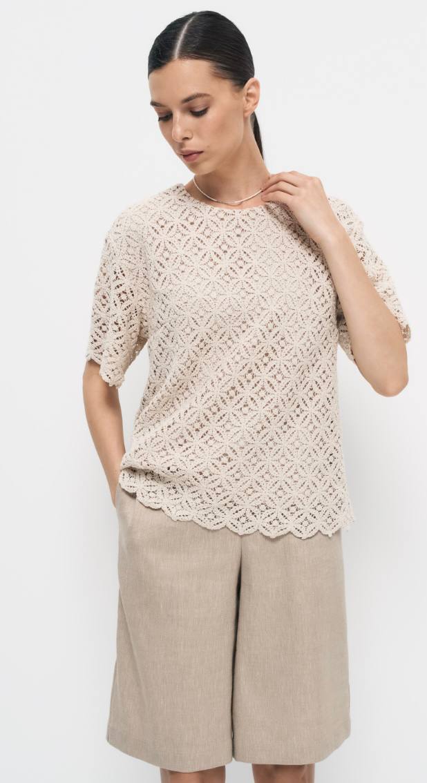 Красивая блуза из хлопкового кружева , рукав втачной, по спинке застежка на пуговицу. Блуза на подкладе из 100% вискозы.