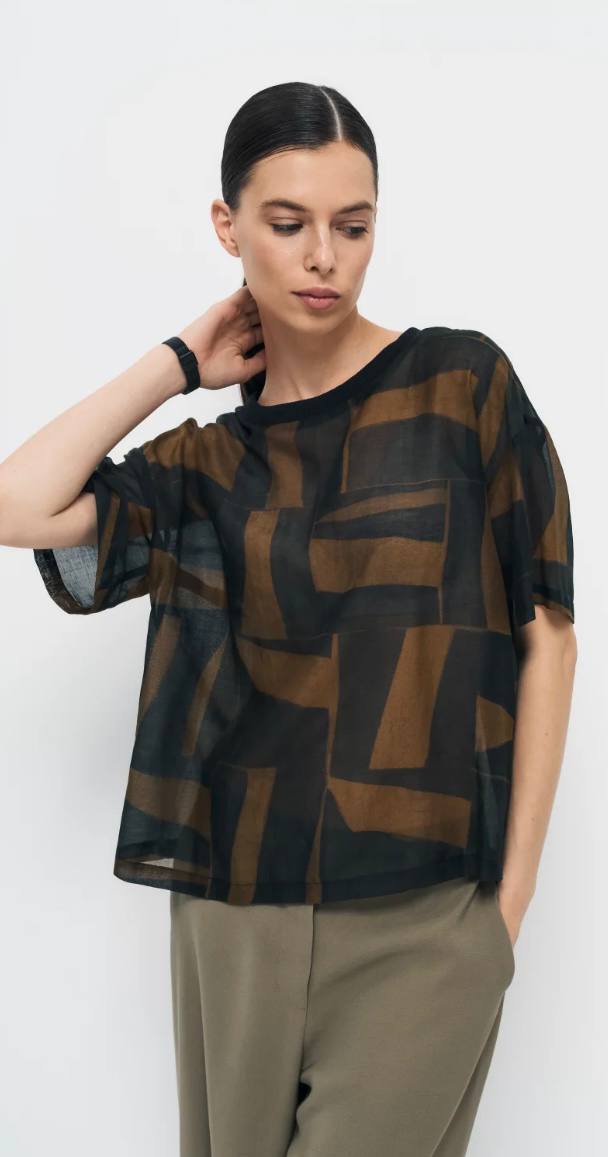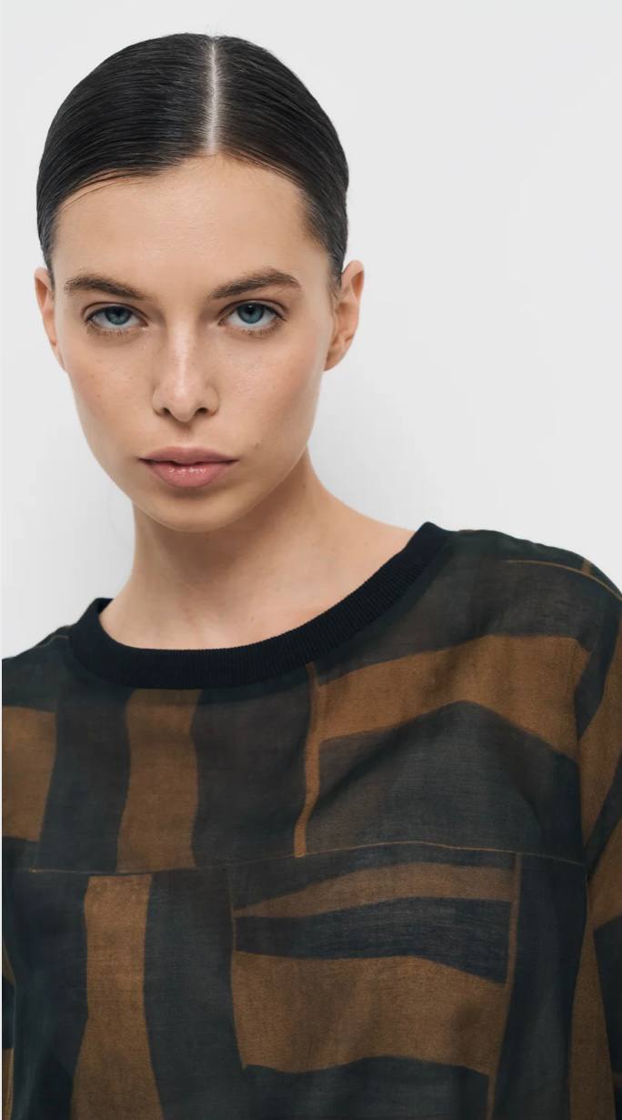 Блуза прямого силуэта выполнена из деликатного итальянского хлопка с добавлением шёлка.