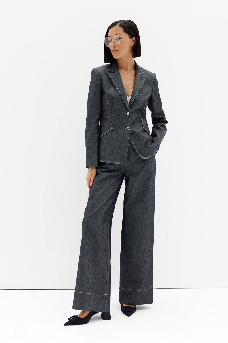 Стильные брюки из тонкого премиального денима. Клёш от бедра, есть акцентная отстрочка.