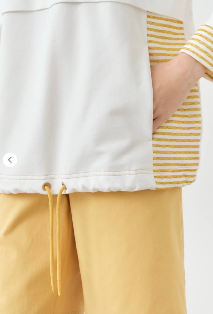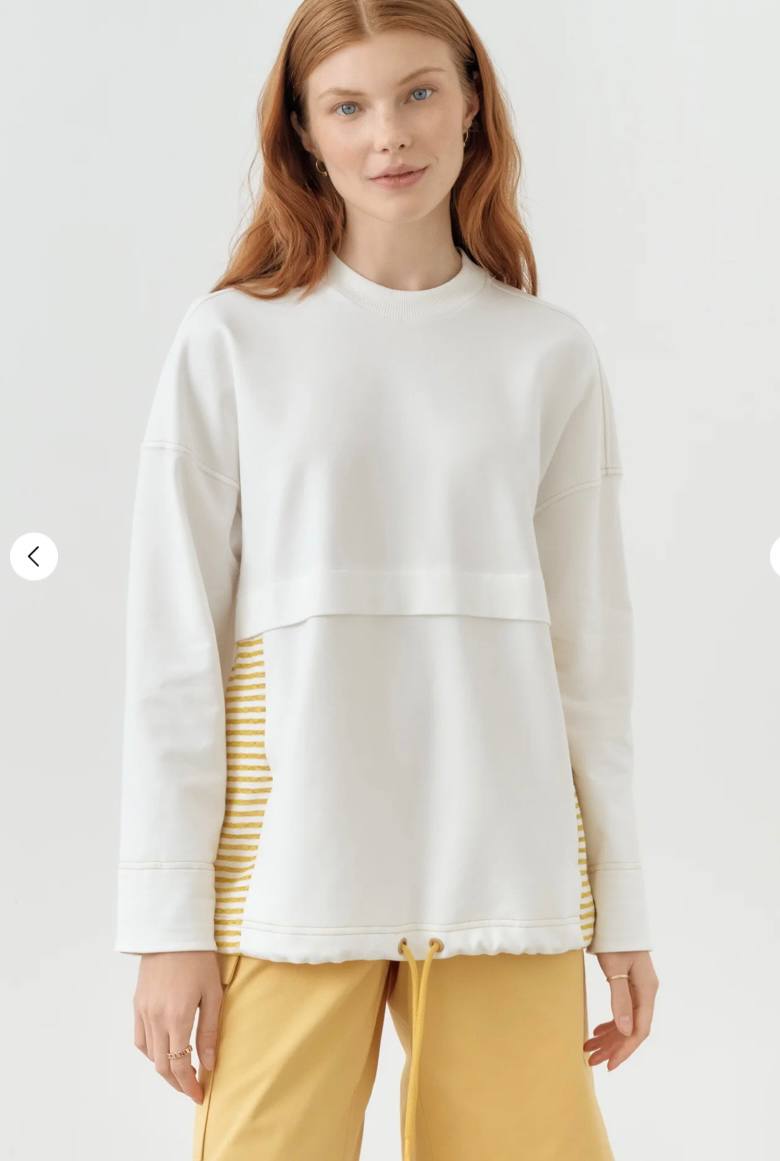 Толстовка из тонкого хлопка, сбоку декорирована трикотажными вставками в полоску.