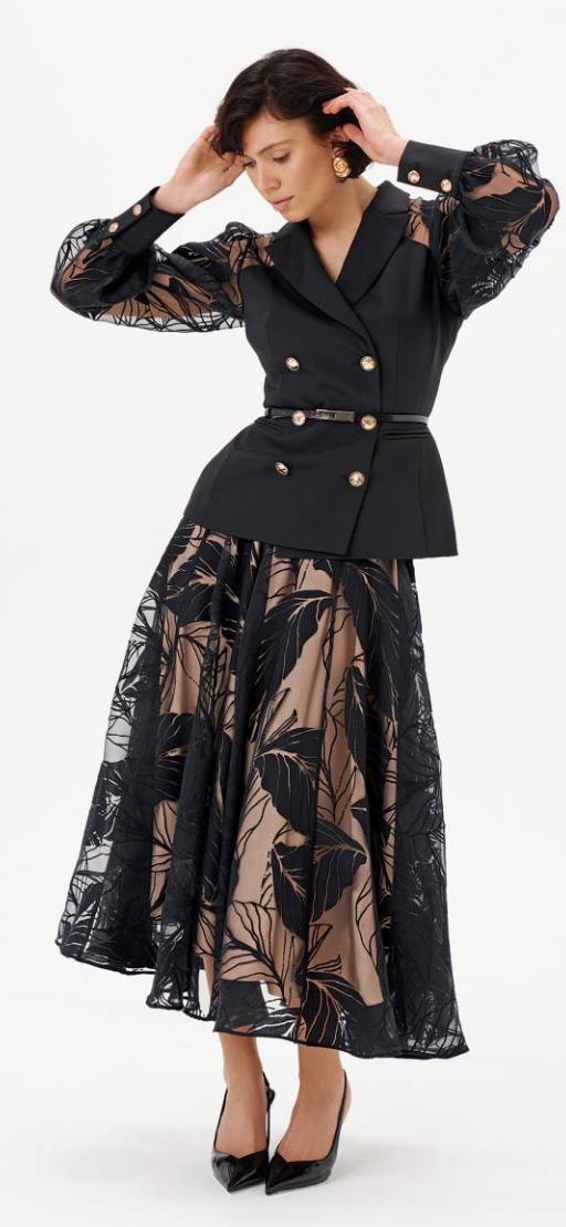 Красивая юбка черного цвета из ажурного шифона на подкладке цвета золото. Можно сочетать с жакетом артикул SAGRADA 3.412