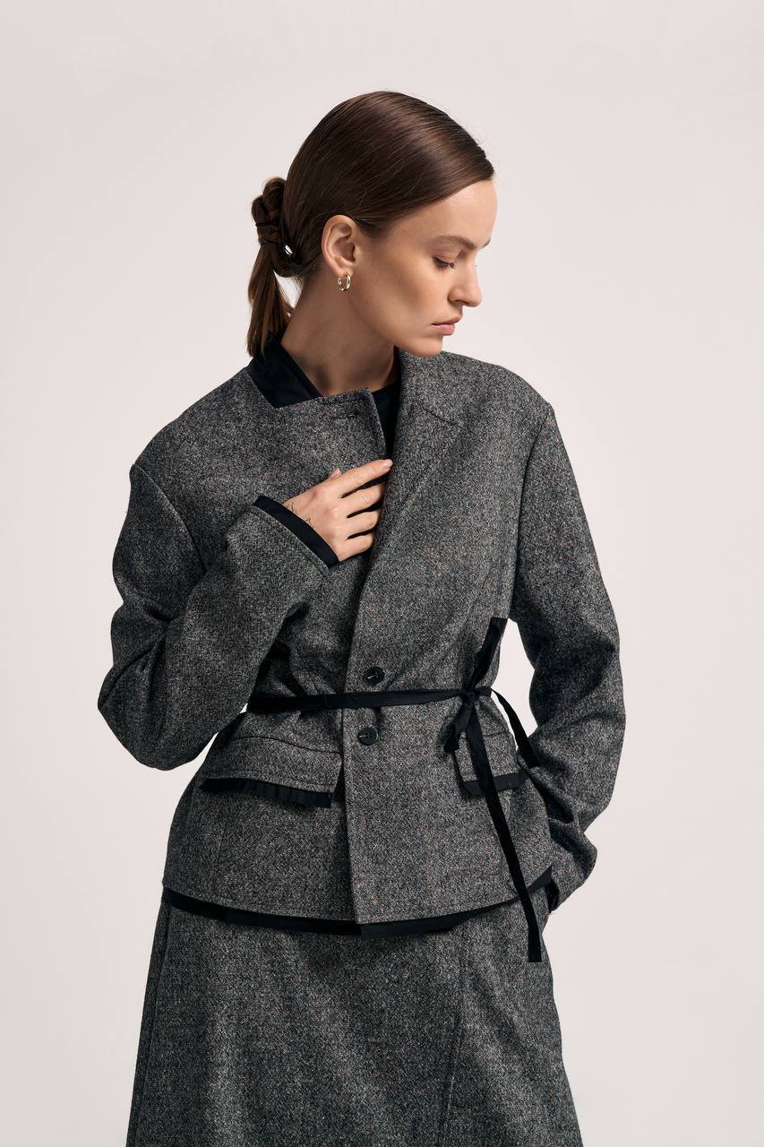Женский жакет из итальянского твида в модном цвете - графит! Его легко сочетать с любимыми брюками, юбкой или джинсами. Тонкий пояс , который идет в комплекте дает возможность менять силуэт. Удобная посадка, качественное исполнение и стильный дизайн делают этот жакет идеальным выбором для любого случая.