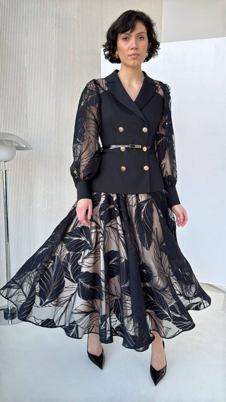 Красивый жакет с комбинацией из тканей разных фактур. Жакет можно стилизовать с юбкой артикул SAGRADA 2.412 или брюками SAGRADA 4.412.