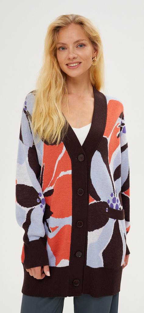 Жакет удлиненный вязаный, есть карманы.